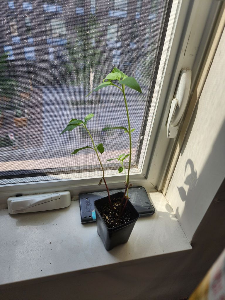 From day to day, the plant grows toward the light. The red part of the stem is not changing or is staying near the bottom. The plant grows, and I water it. I thought about playing music for it, but it seems abnormal. I wanted it to live where the trees are. Where animals see it and interact with it. Brushing past it. But I have it here in my room locked up. The wind and air would be its friend as it grows toward the sun. This seedling becomes a metaphor for practicing empathy: I don’t need to know everything right away to care meaningfully.